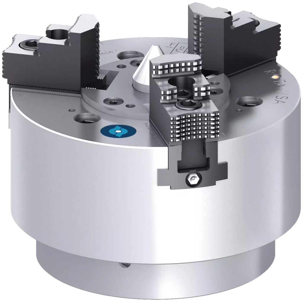 - 3 Jaw Chucks may be used in robotic loading for varied jobs where part size changes are frequent.