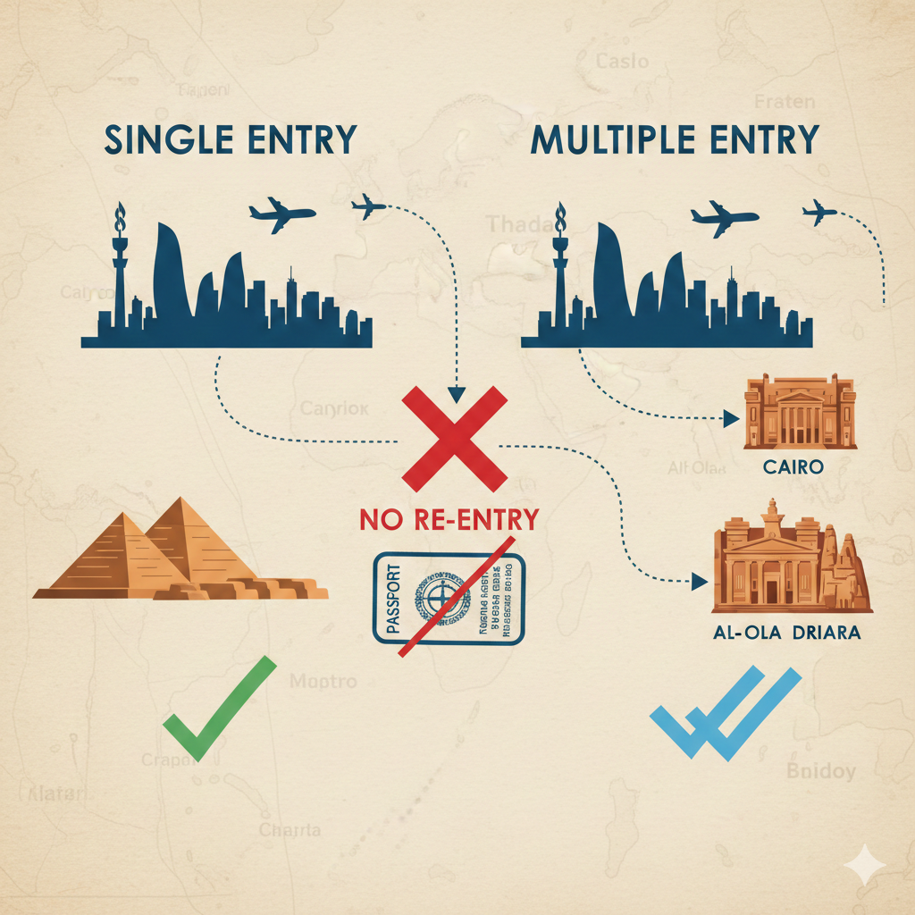 If your plan is a straightforward vacation flying from Baku to Cairo and back, the Single Entry Egypt eVisa is the most cost-effective choice. However, if you plan to use Egypt as a base to visit nearby Jordan or Saudi Arabia and then return to Egypt to fly home, you must apply for the Multiple Entry Egypt eVisa. If you have a single-entry visa and leave the country, you cannot re-enter without applying for a brand-new visa.