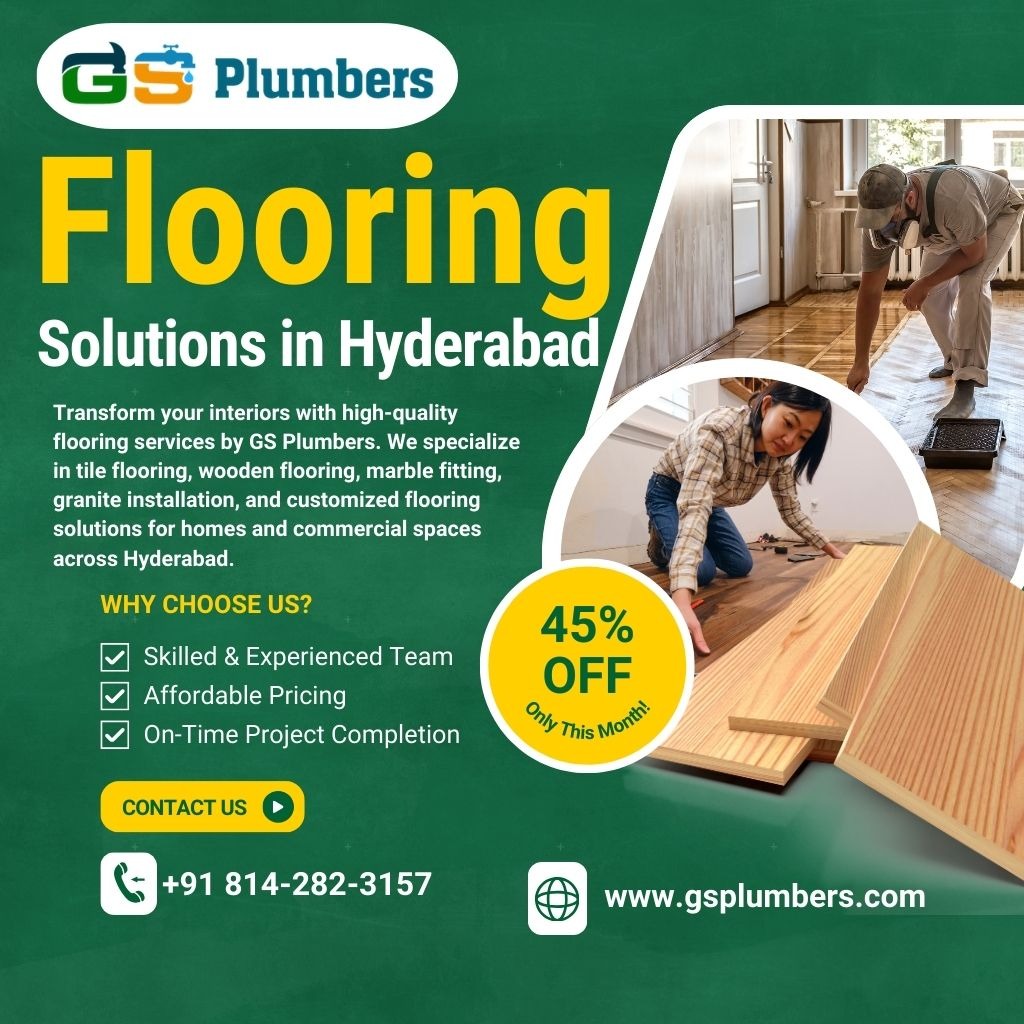 If you want expert flooring services in Hyderabad, contact GS Plumbers today. Call +91 814-282-3157 or visit https://www.gsplumbers.com/ to get the best solutions for your home or office.
