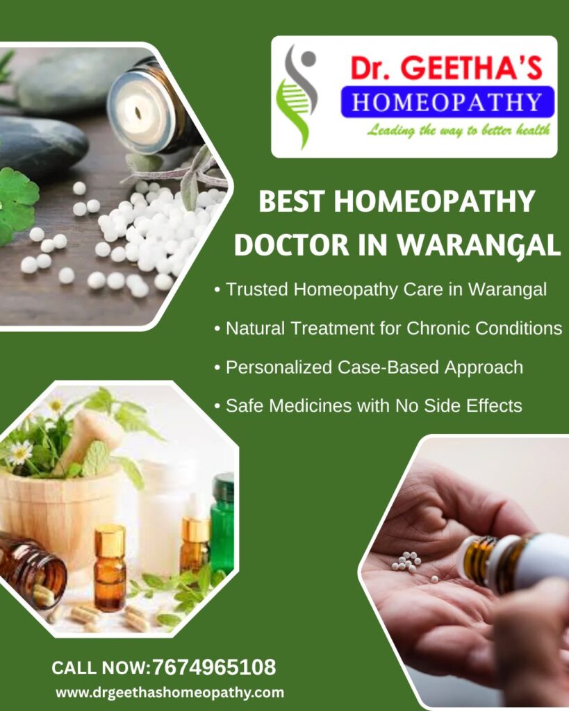Address: Dr. Geethas Homeopathy, Dharani complex, first floor B4, kakaji colony, Hanumakonda 506001, Telangana.