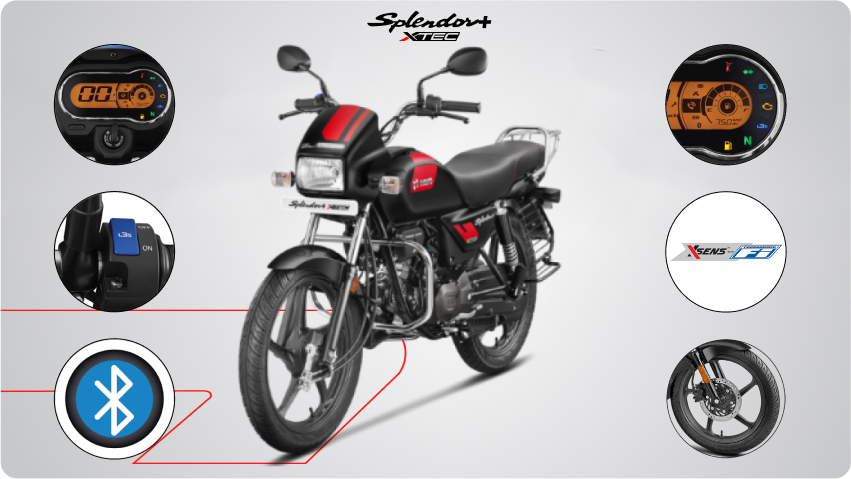 Unlike the standard Splendor, the Xtec version introduces: